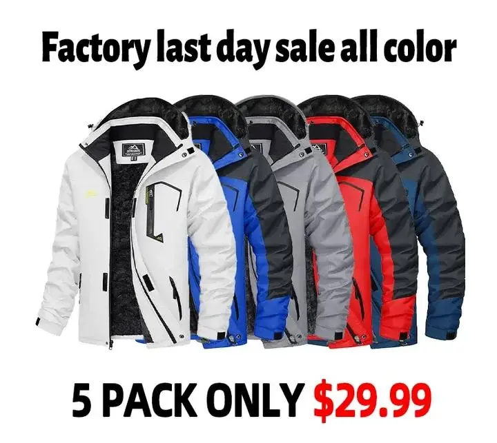 Men's 5-Pack Water-Repellent Winter Ski Jackets with Fleece Lining