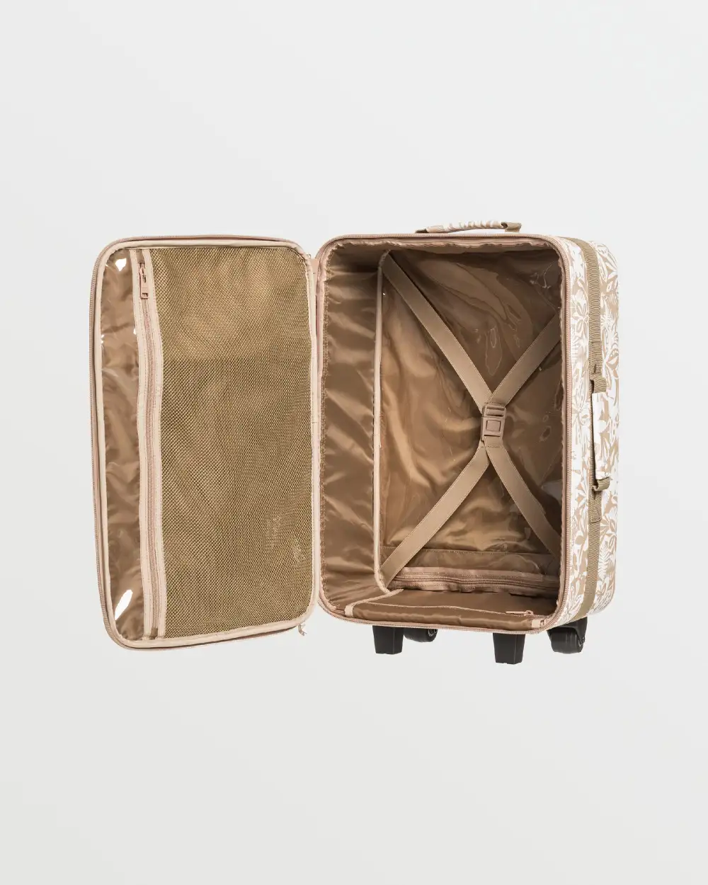 Elevate your travel game with this stylish cabin bag. Crafted from durable printed polyurethane, it features a spacious main compartment and two inner sections for easy organization. The zip closure keeps your essentials secure, while the sleek metal plate adds a touch of sophistication.