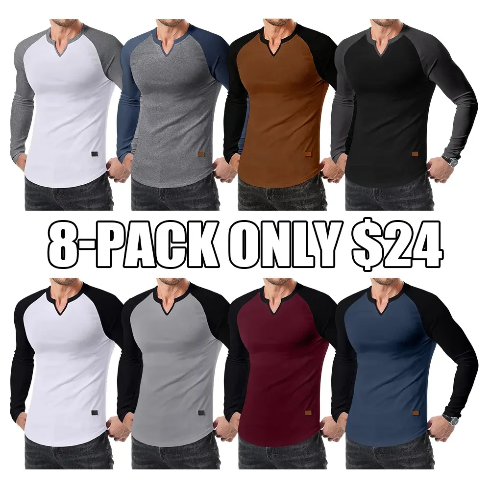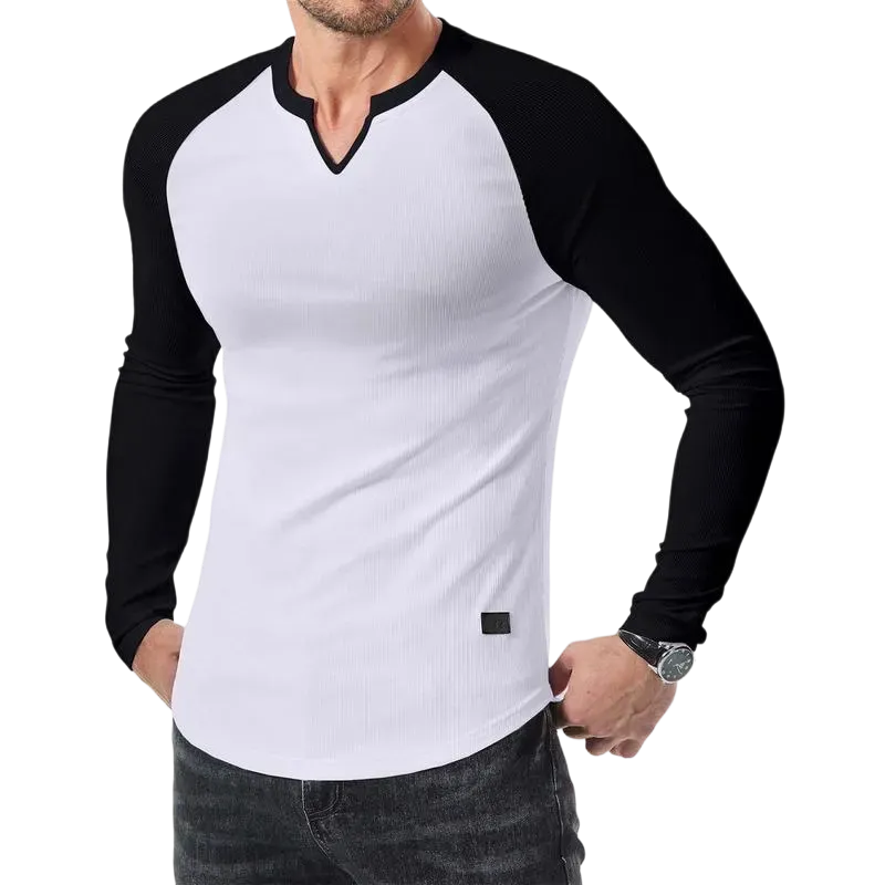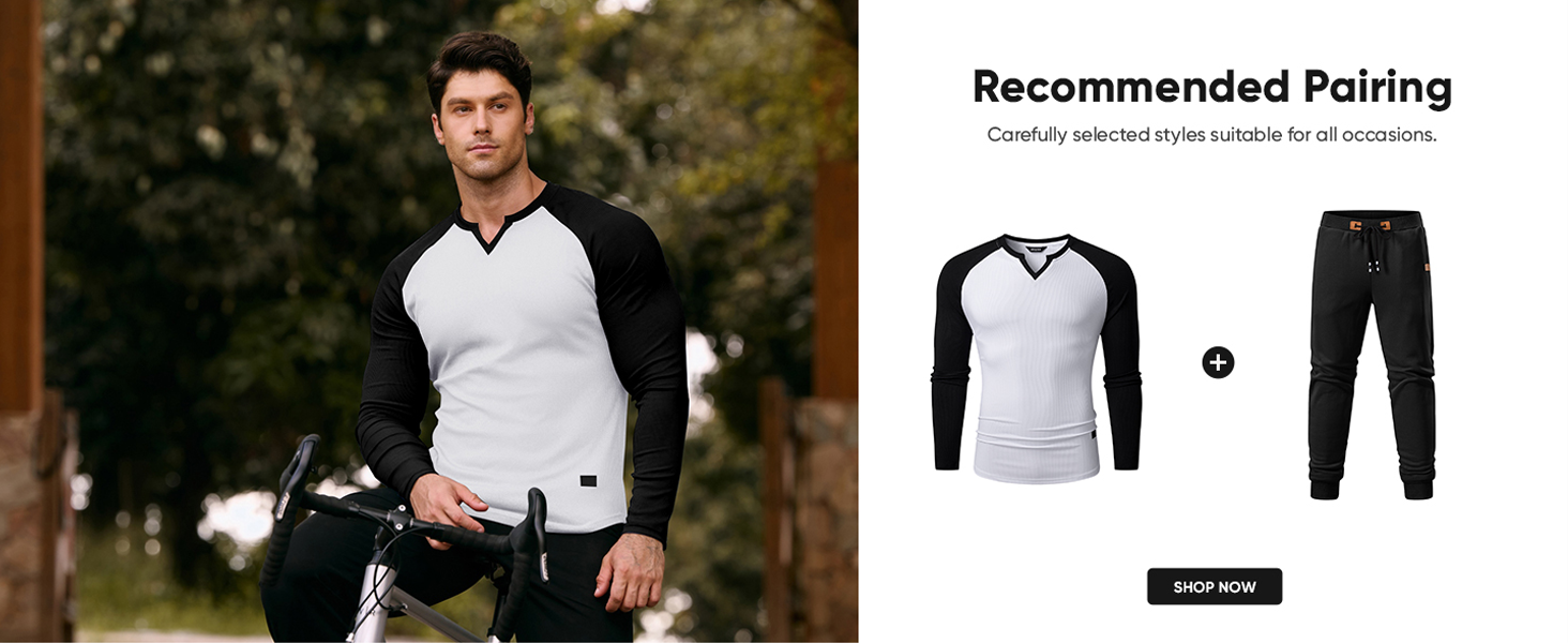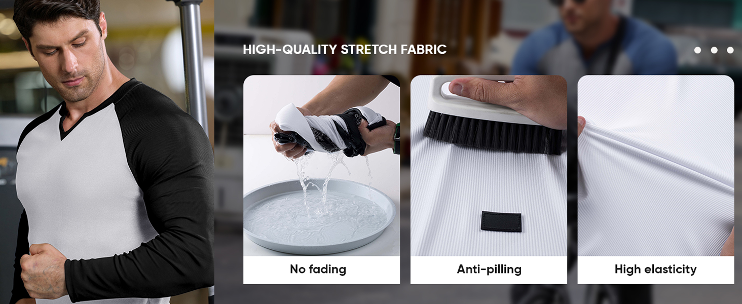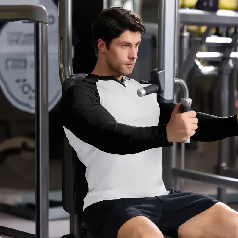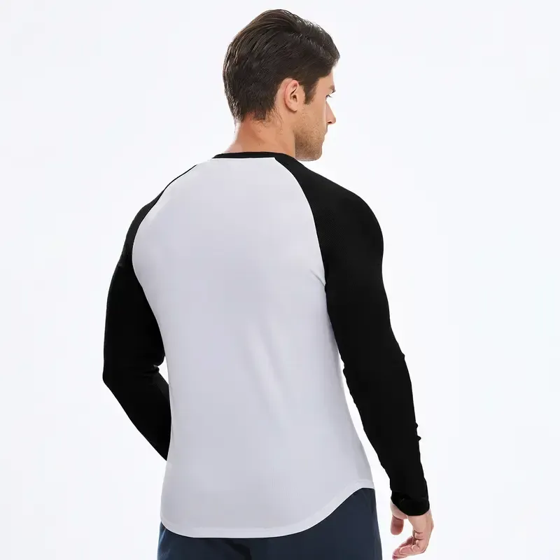 Highlights: The core highlights are the "classic raglan-sleeve design (balances shoulder lines & enhances mobility) + stretchy ribbed fabric (dual suitability for sports & daily wear) + contrast color blocking (timeless baseball-inspired vibe) + slim tailored fit (flaunts muscle definition without tightness)" — it blends functional performance, retro sporty style, and everyday versatility, balancing comfort and polished aesthetics.