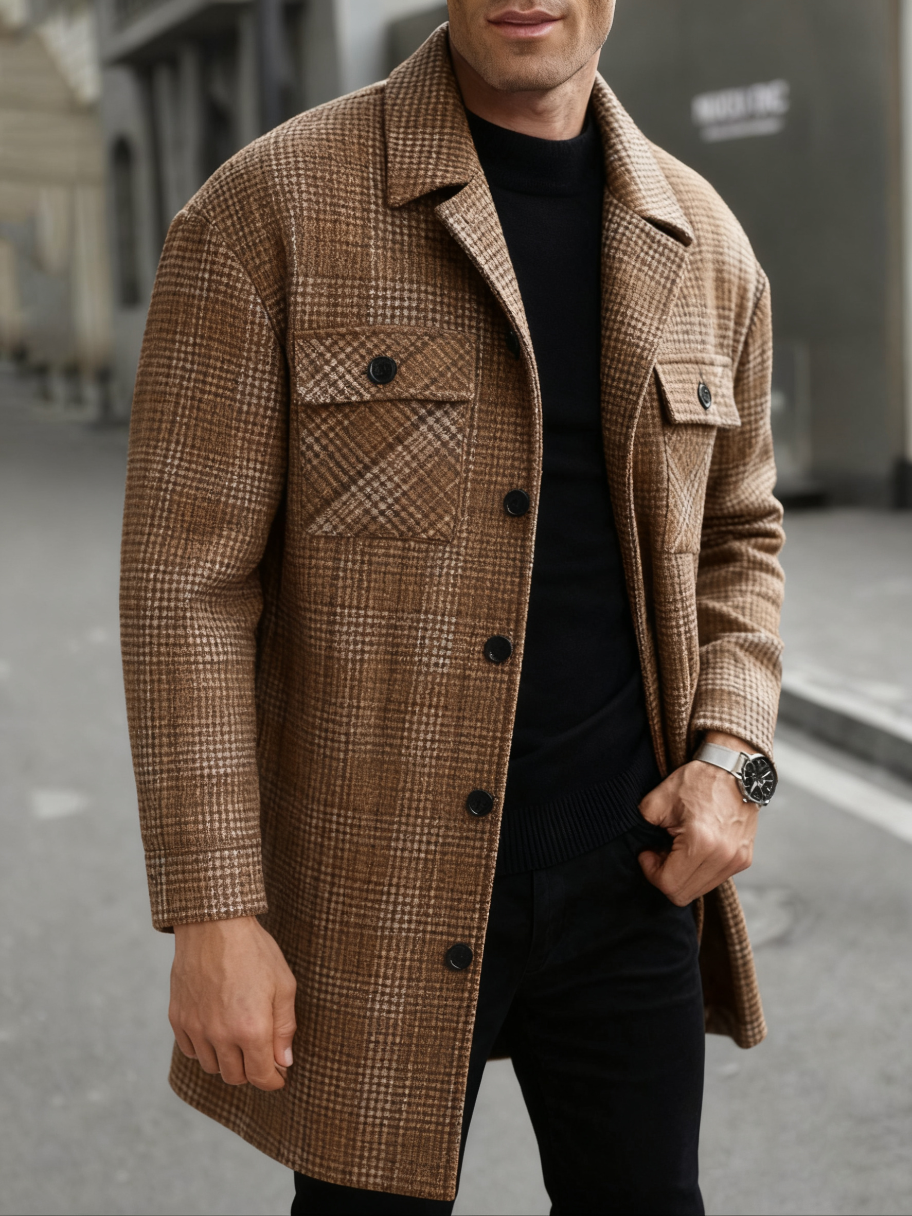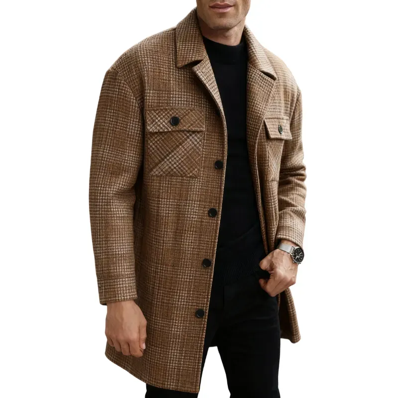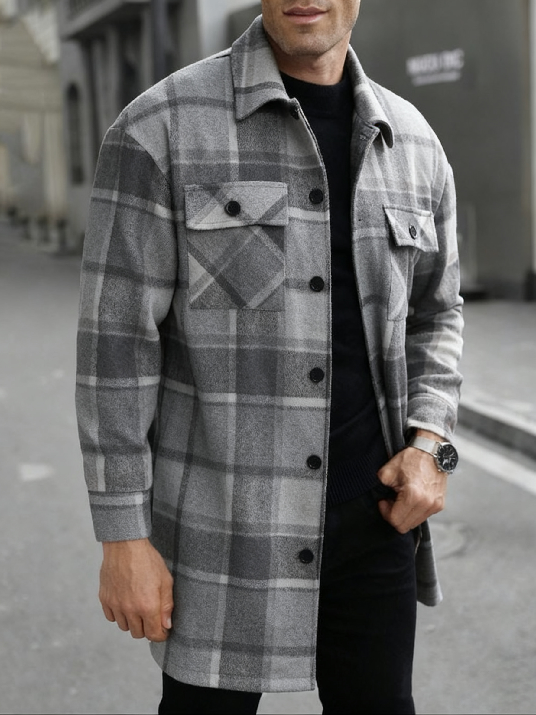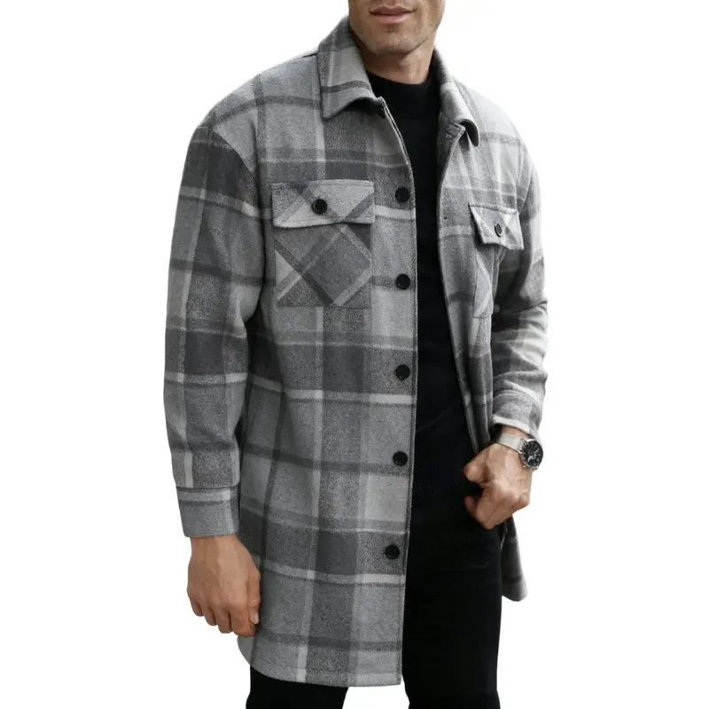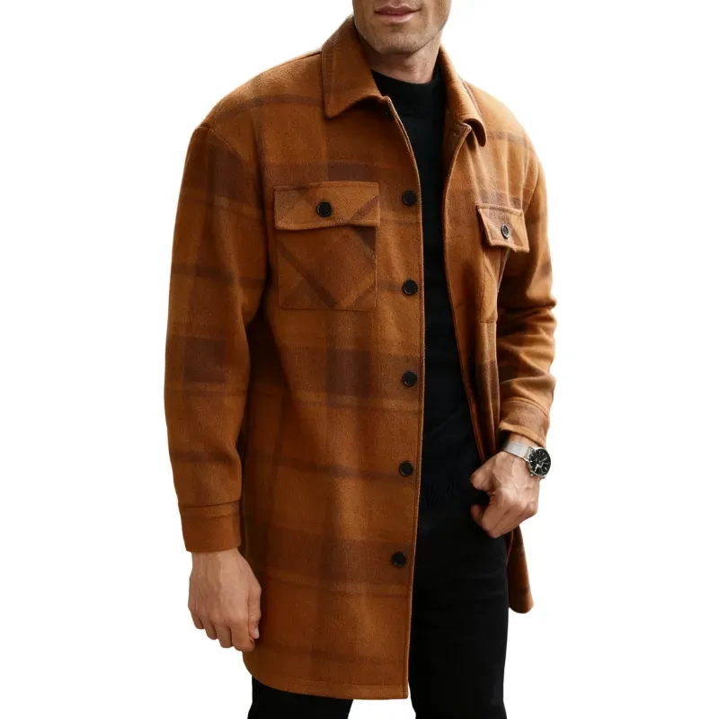 🌟 Men's Plaid Check Long Coat 🌟Stylish Design·This men's plaid check long coat features a buttoned lapel, adding a classic touch.🌟·The loose fit ensures comfort, making it perfect for daily wear.·Front button pockets provide practical storage for essentials.Seasonal Suitability·Ideal for autumn and winter, this coat keeps you warm and comfortable.·A versatile trench coat suitable for various occasions during the cooler months.Key Features·Buttoned lapel for a polished look