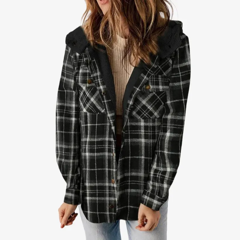 Designed for both fall and winter, this elegant coat combines classic print with modern comfort, making it the perfect outerwear piece for your daily wardrobe.